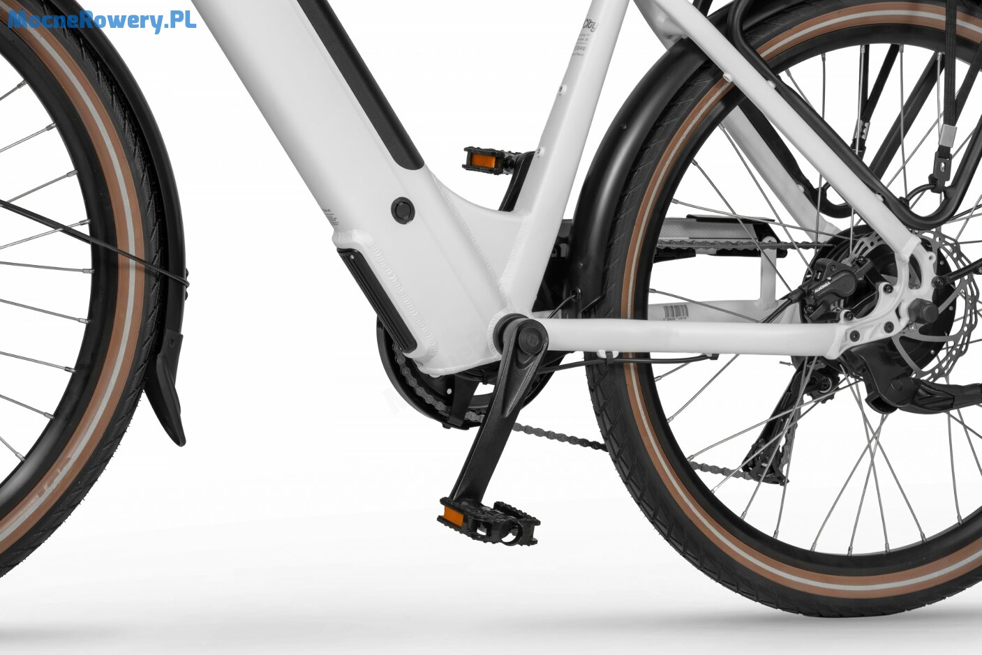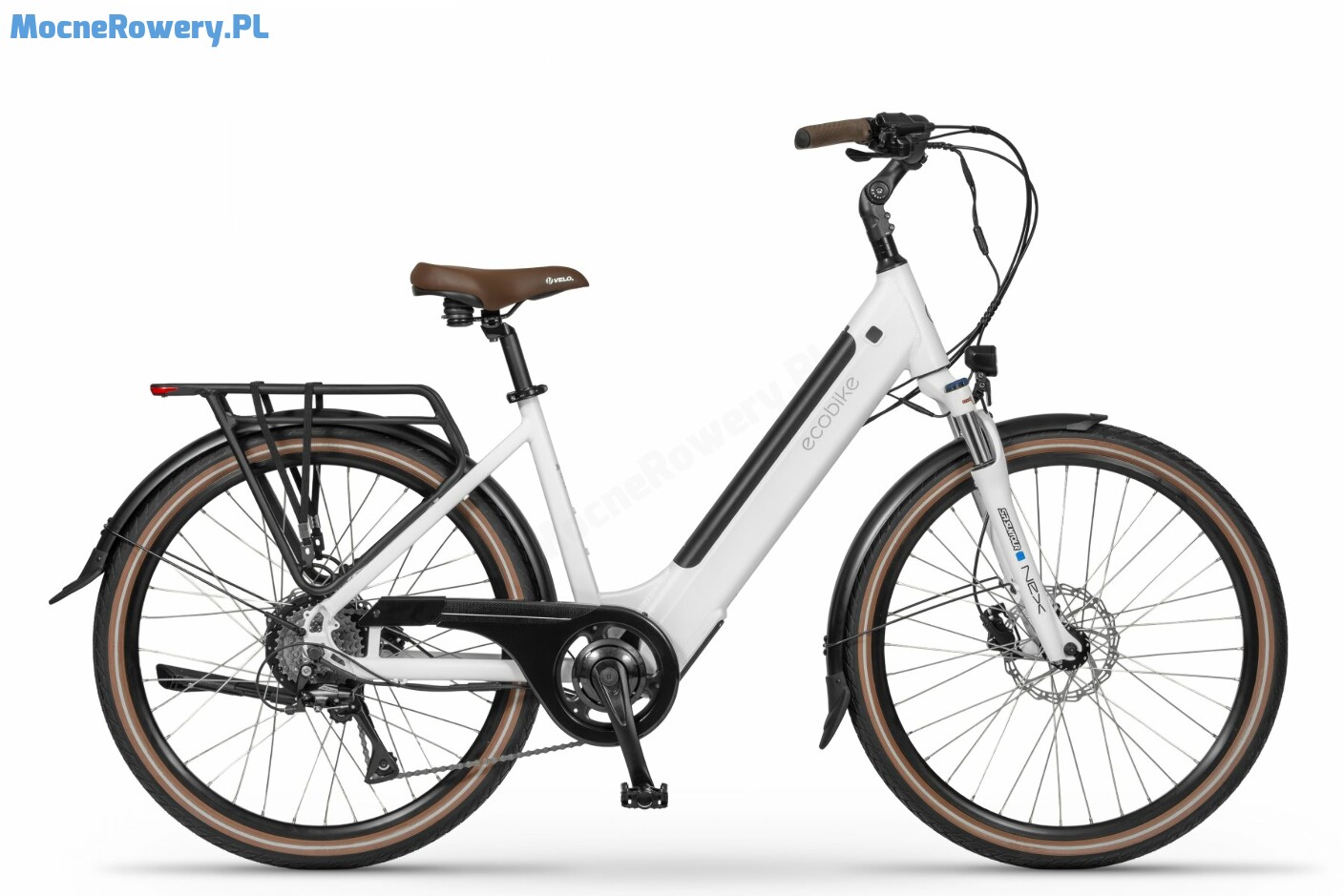 W rowerze Ecobike X-City 26 White wykorzystano silnik umieszczony z tyłu, wspomagający rowerzystę do prędkości maksymalnej do 25 km/h . Silnik jest umieszczony w piaście tylnego koła i współpracuje z akumulatorem o pojemności 504 Wh / 36 V . Jego znaczącą zaletą jest bezpośrednie przenoszenie mocy z silnika bezpośrednio na oponę. Dodatkowo charakteryzuje się mniejszym zużyciem łańcucha, gdyż nie używa go do przeniesienia mocy na tylne koło lecz robi to bezpośrednio. Proces montażu i demontażu koła z silnikiem jest niezwykle prosty, dzięki zastosowaniu hermetycznego złącza. Po uruchomieniu wspomagania i ruszeniu, użytkownik odczuje natychmiastowe i silne przyspieszenie, porównywane czasem do wiatru, wiejącego w plecy. Jazda ze wspomaganiem na Ecobike X-City 26 White to wspaniałe uczucie!