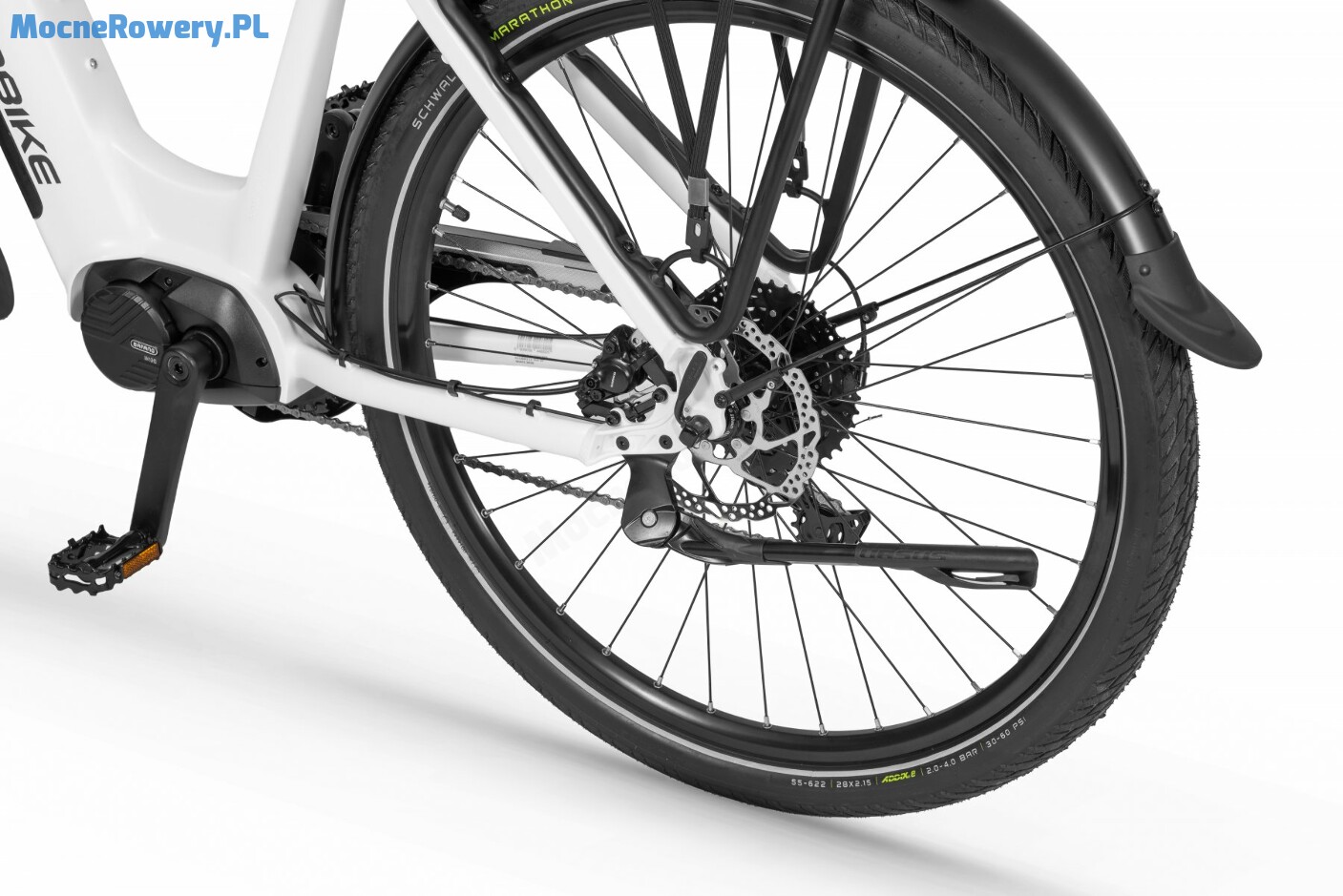 Ten rower został wyposażony w bagażnik. Możesz na nim przewieźć laptopa, torebkę, przesyłkę czy fotelik z dzieckiem. Szybki dojazd do pracy, przedszkola, na targ, na zakupy to żaden problem. Omijaj korki, uniezależnij się od rozkładu jazdy komunikacji miejskiej i załatw wszystkie sprawunki bez dźwigania! Jeżdżąc rowerem nie musisz płacić za parking, a dzięki dołączeniu sakw (sprzedawane osobno) można zrobić zakupy na kilka dni. Szybko, sprawnie i ekologicznie. rower elektryczny ECOBIKE LX 300 WHITE 900Wh zmieni Twój styl życia.