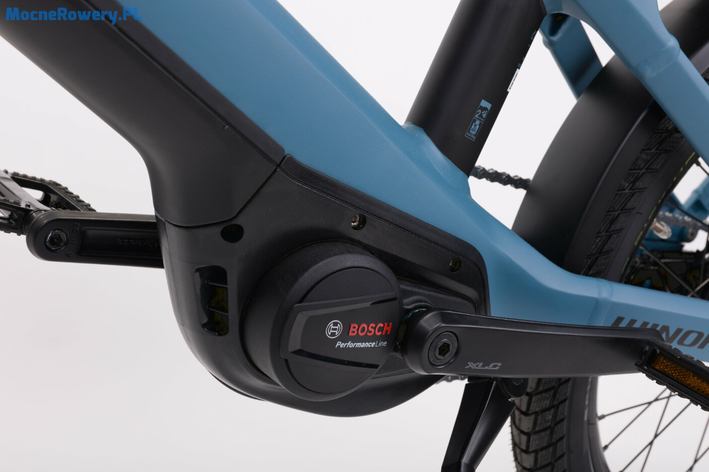 Winora Radius został wyposażony w silnik centralny Bosch Performance, który dysponuje aż 65 Nm momentu obrotowego. Wspomaga on rowerzystę nawet do 300% (w najmocniejszym trybie). Do sterowania poziomem wspomagania służy wyświetlacz Bosch Purion . Do wyboru dostępne są cztery tryby o nazwie Eco (55%), Tour (120%), Sport / eMTB (120-300%) oraz Turbo (300%). Nowa wersja silnika została zoptymalizowana tak, aby jazda na wyłączonym silniku nie generowała dużego oporu. Kręcenie korbą z tym silnikiem będzie równie płynnie co w tradycyjnym rowerze. Poprawie uległy także waga i wymiary - jest lżejszy (2,9kg) i mniejszy. Bosch Performance (gen 2) jest także najcichszym silnikiem w swojej klasie. Jednocześnie zapewnia dużą moc wspomagania, nawet przy niskiej kadencji. Doskonała zabawa gwarantowana, już od pierwszej przejażdżki!
